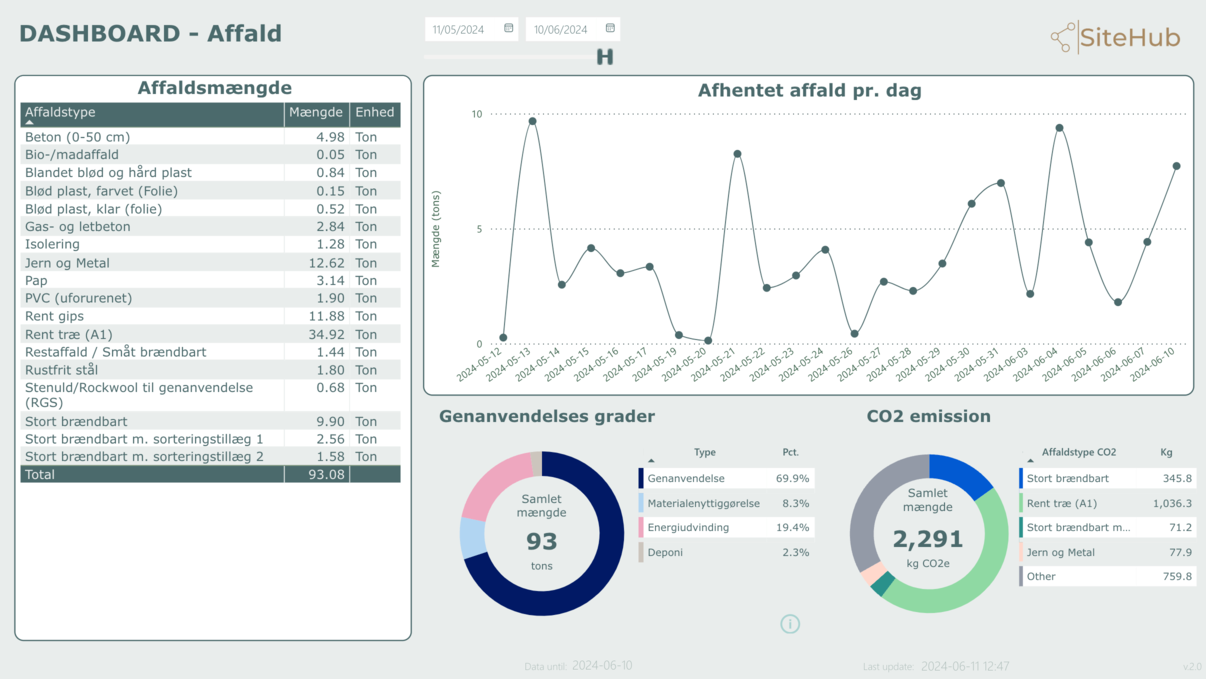 Material waste and spoilage in the construction process is also an important part of the LCA calculation, which is why SiteHub has a strong focus on ensuring efficient resource management, both physically on site and in our software and hardware solutions. Our software documents the exact quantities of waste.